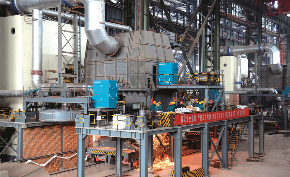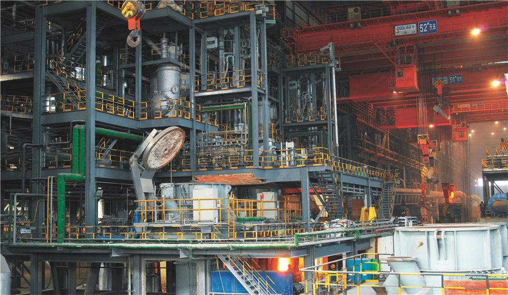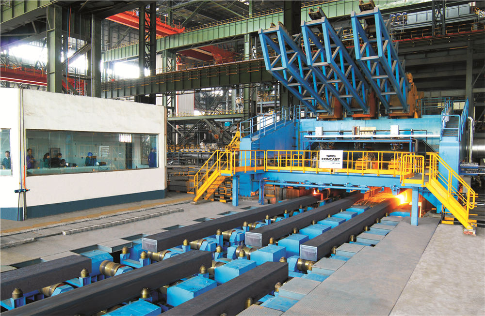 煉鋼系統(tǒng)擁有1300噸混鐵爐一座、120噸雙工位KR脫硫裝置一座、120噸頂?shù)讖?fù)吹轉(zhuǎn)爐兩座、60噸頂?shù)讖?fù)吹轉(zhuǎn)爐兩座、120噸LF精煉爐四座、120噸RH精煉爐兩座、60噸LF精煉爐四座、合金熔化爐兩座、60噸VD精煉爐兩座,全球弧形半徑最大,Φ500mm~Φ1300mm的特殊鋼大圓坯連鑄機(jī),合金鋼小方(圓)坯連鑄機(jī),合金鋼大方(圓)坯連鑄機(jī)(引進(jìn)瑞士康卡斯特),八機(jī)八流、七機(jī)七流、六機(jī)六流、五機(jī)五流連鑄機(jī)各一臺,具備年產(chǎn)500萬噸鋼的生產(chǎn)能力。